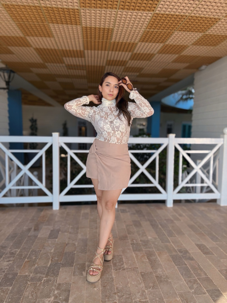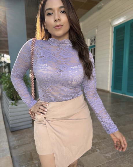 Nuestra blusa de encaje de manga larga es la prenda perfecta para elevar cualquier look. Ideal para usar en capas o como pieza protagonista, destaca por su delicado diseño floral y su acabado transparente que aporta un toque sofisticado y femenino. Su silueta se adapta de manera favorecedora al cuerpo gracias a la blonda con la que está confeccionada, ofreciendo comodidad, flexibilidad y una versatilidad que la convierte en un básico imprescindible para tu guardarropa.